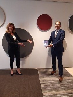 Ingrid Geveke ontving afgelopen donderdag namens de VGS het Dreigingsbeeld van de IBD gemeenten uit handen van directeur Informatiesamenleving Nathan Ducastel van de VNG. Ingrid zei hierover: “Transparantie over het onderwerp helpt gemeenten om steeds beter grip te krijgen op de materie. De beveiliging van onze systemen is geen kwestie van technologie alleen, het is mensenwerk en vooral een zaak van management en bestuur, dat blijkt wel uit het beeld.”